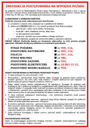 3) umieszczają w widocznych miejscach instrukcje postępowania na wypadek pożaru wraz z wykazem telefonów alarmowych;