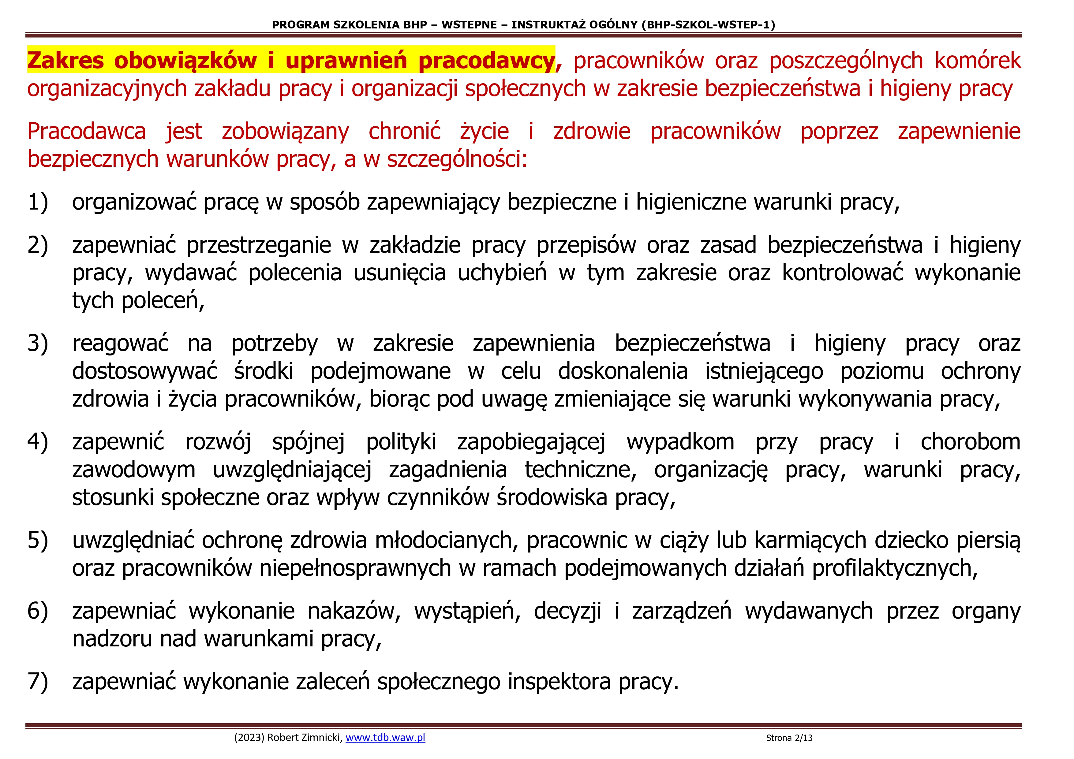 1.2.Zakres obowiązków i uprawnień pracodawcy, pracowników oraz poszczególnych komórek organizacyjnych zakładu pracy i organizacji społecznych w zakresie bezpieczeństwa i higieny pracy