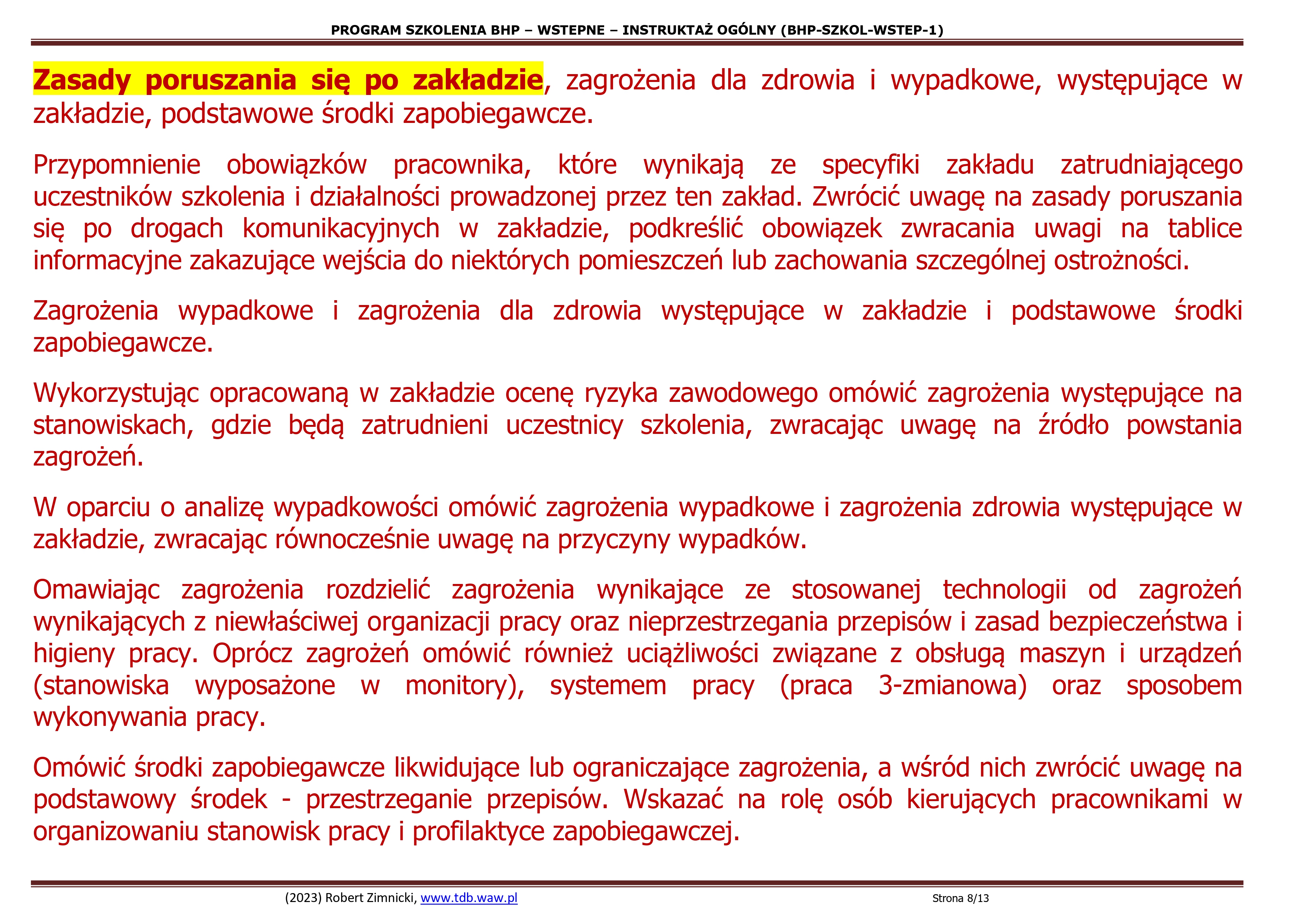 2.1.Zasady poruszania się na terenie zakładu pracy