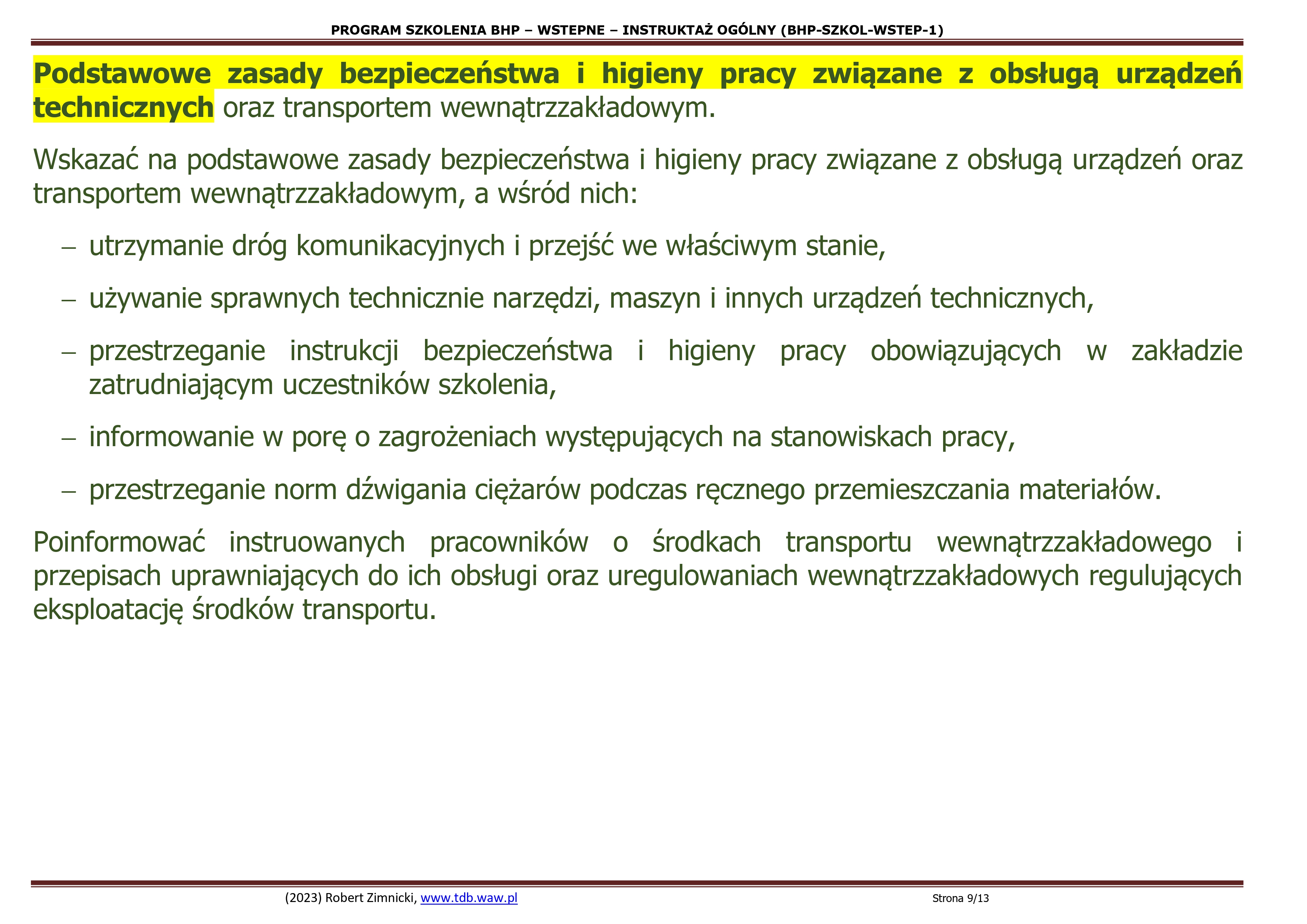 3. Podstawowe zasady bezpieczeństwa i higieny pracy związane z obsługą urządzeń technicznych oraz transportem wewnątrzzakładowym