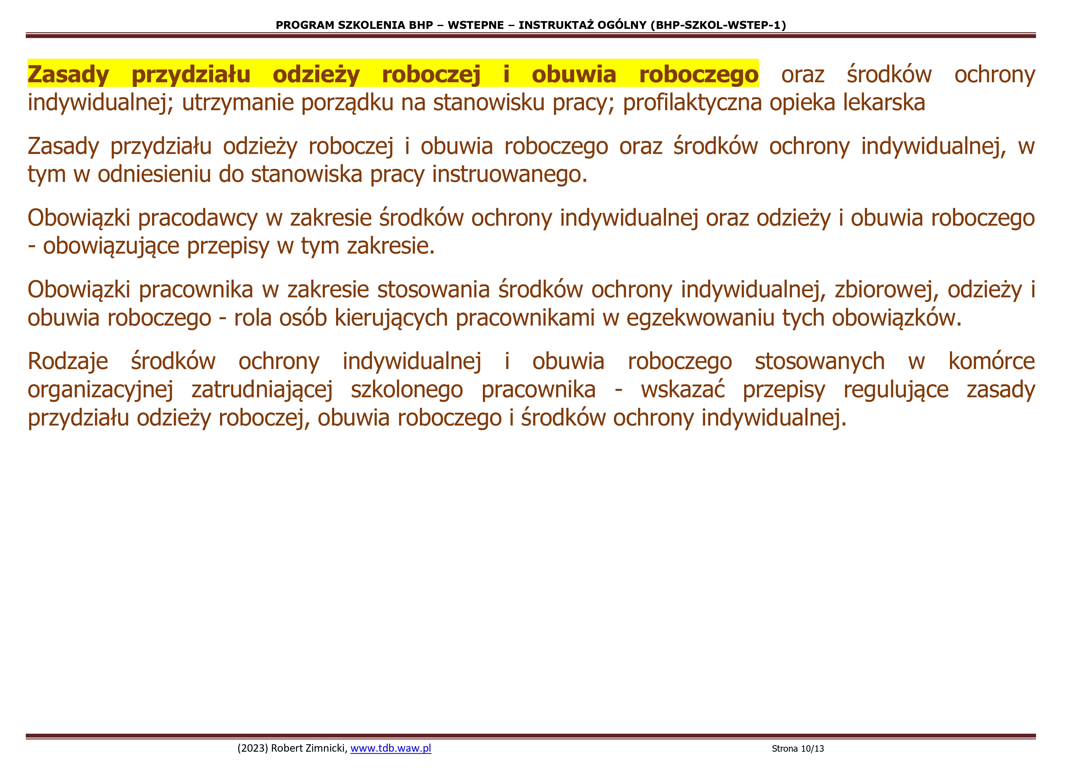 4.1.Zasady przydziału odzieży roboczej i obuwia roboczego oraz środków ochrony indywidualnej, w tym w odniesieniu do stanowiska pracy instruowanego