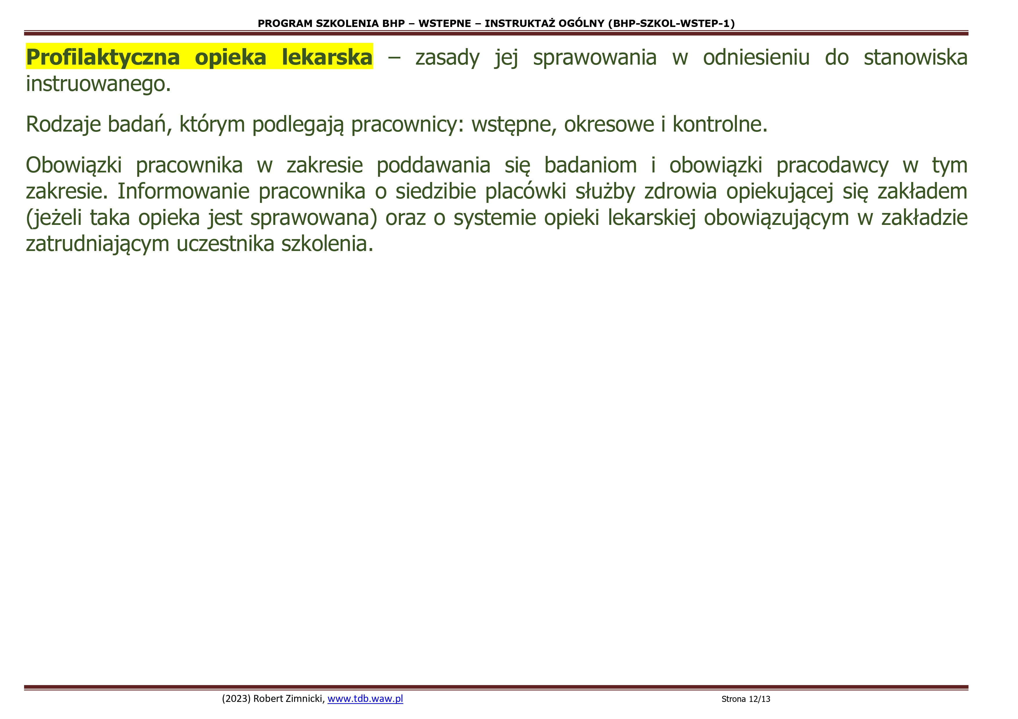 4.3. Profilaktyczna opieka lekarska – zasady jej sprawowania w odniesieniu do stanowiska instruowanego