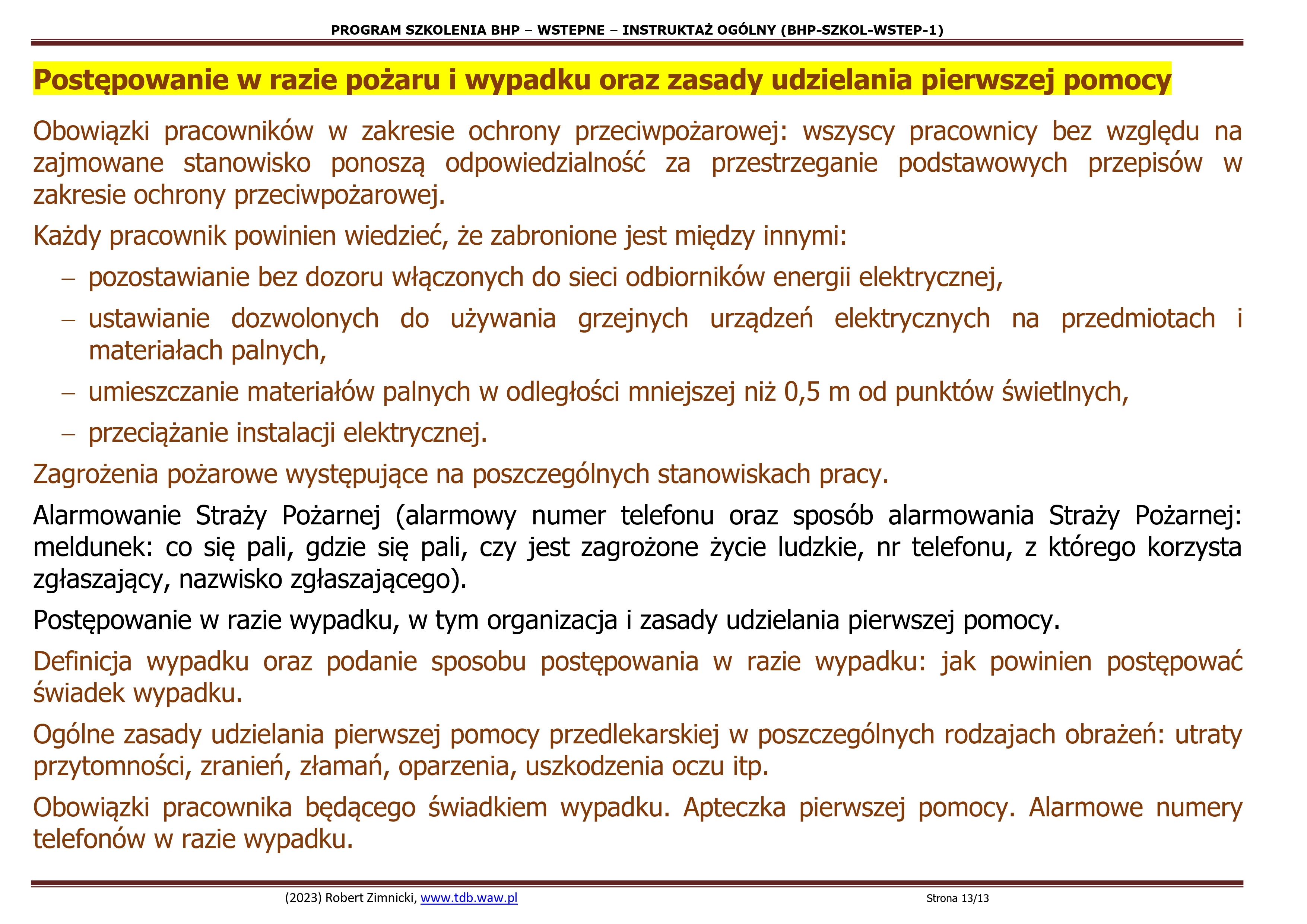 5.1.Podstawowe zasady ochrony przeciwpożarowej oraz postępowania w razie pożaru